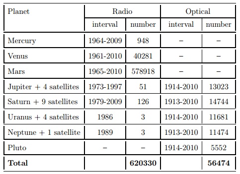 Pitjev and Pitjeva have compiled an impressive data set consisting of some 677,000 measurements of planetary positions taken since 1910. These include optical measurements from observatories on Earth, ranging measurements from various spacecraft such as Cassini at Saturn and the Mars and Venus Express missions plus various Russian radar measurements of planetary positions taken between 1961 and 1995.