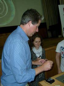 С большим интересом прослушал лекцию Германа Верлинде 2 июня. Организаторами были переведены на русский язык и предоставлены слушателям конспекты с подробными тезисами. Также неплохим был перевод на русский язык,